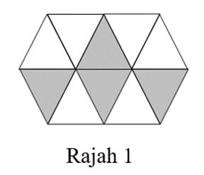 Rajah 1 menunjukkan gabungan beberapa buah segi tiga yang sama besar. Berapakah pecahan bahagian berlorek daripada keseluruhan rajah itu?