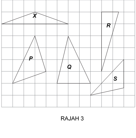 Rajah 3 menunjukkan beberapa segitiga yang dilukis pada petak segiempat yang sama besar.
