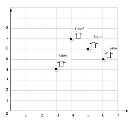 Nyatakan koordinat bagi rumah Yusof pada satah Carte di bawah.