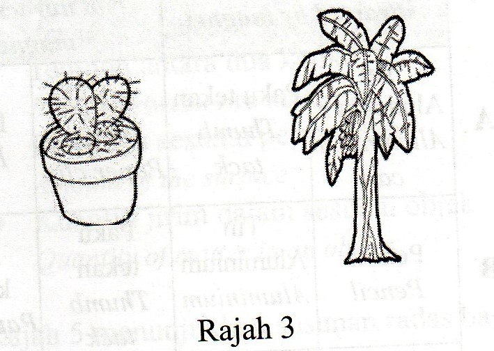Rajah 3 menunjukkan dua jenis tumbuhan. Apakah ciri yang terdapat pada kedua - dua tumbuhan itu bagi mencegah kehilangan air ketika cuaca panas melampau?