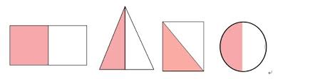 一年级分数图案选出测验:找出占二分之一的图案,理解分数写法。