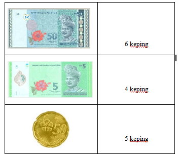 Berdasarkan rajah tersebut, Salina membeli tiga item yang mempunyai harga yang rendah.